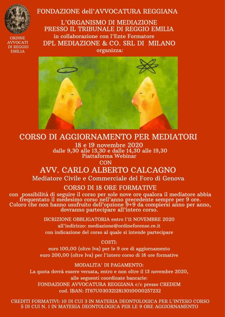 Per prenotazioni e iscrizioni: dplmediazione@gmal.com