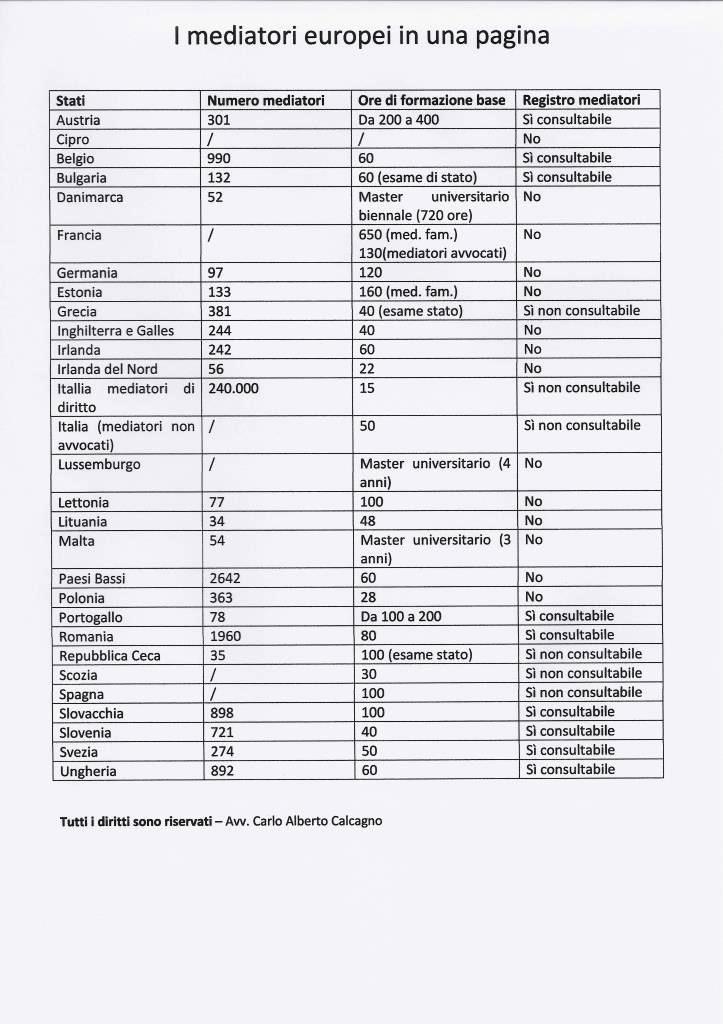 4) Paesi Bassi: i legali olandesi vedevano la mediazione italiana obbligatoria (ante decreto del fare) come necessaria; ultimamente il Mediation Training Institute la sta invocando per le procedure di divorzio; il nuovo progetto olandese sulla mediazione richiede l’inserimento in citazione dei motivi per cui non si intende mediare e spinge verso la mediazione delegata.